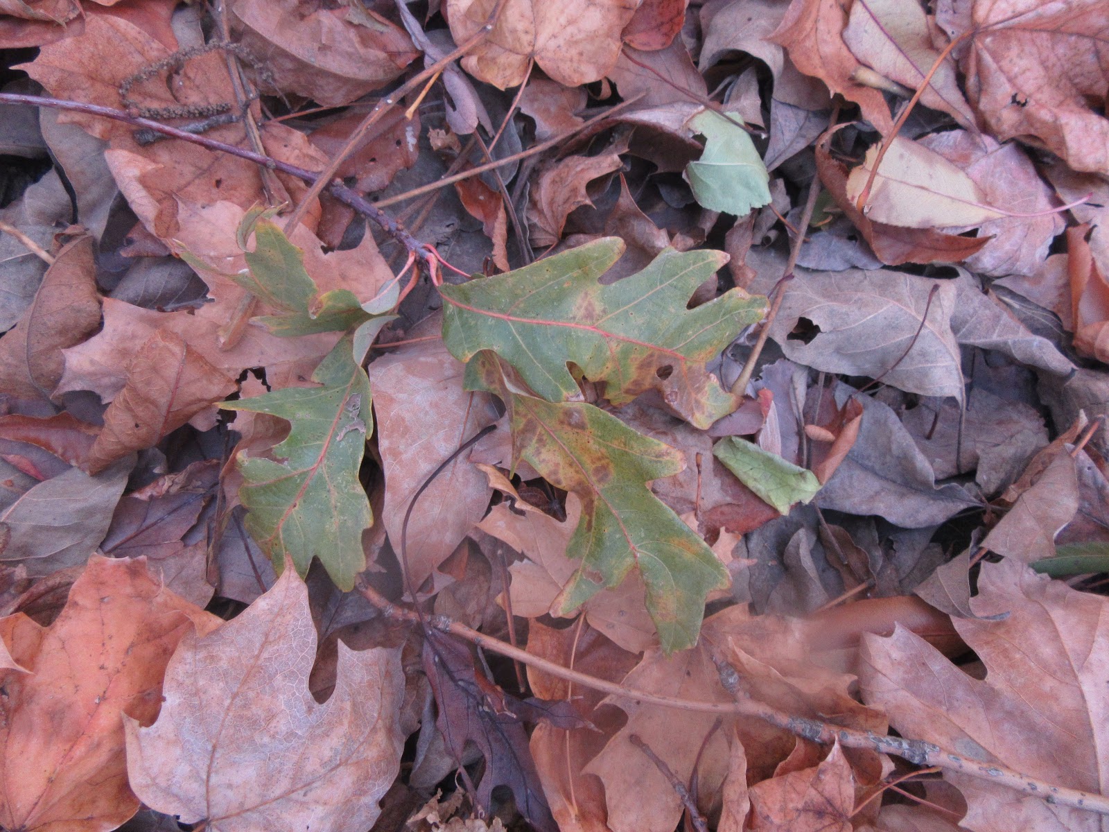 The Very Rotten Log, disappearing into the leaves and the ground. It extends from the other side of the Creek (distant) to the Inlet (foreground - not visible) and has lost a section to the pond itself.